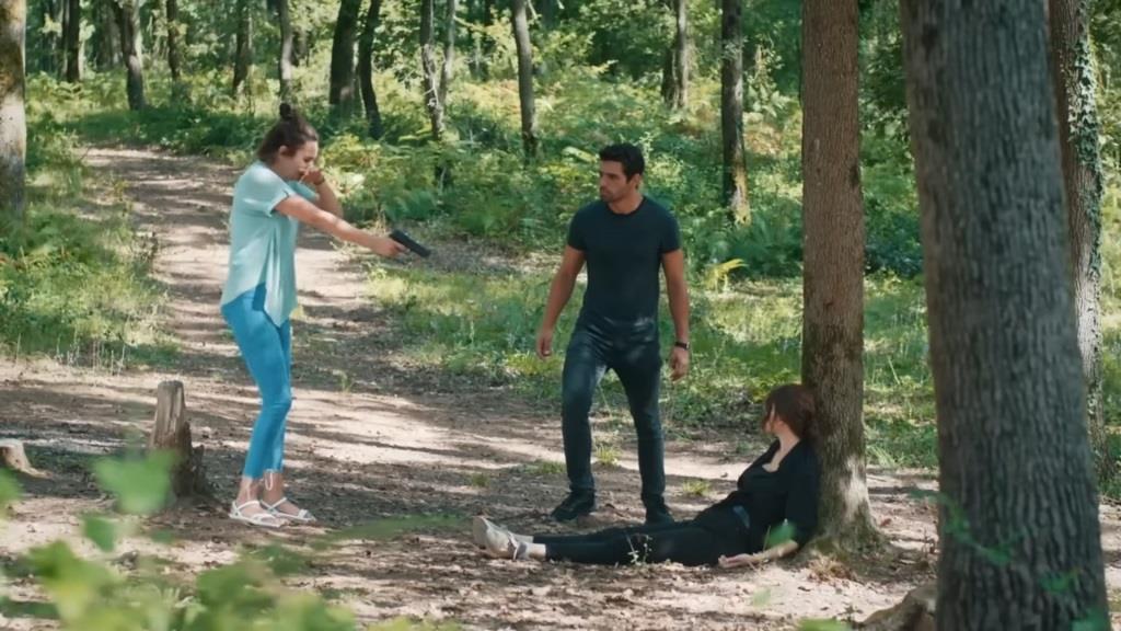 Zanim Yagmur zdąży zareagować, Ali wyskakuje zza drzew. W mgnieniu oka rzuca się na nią, wytrącając broń z jej dłoni. Pistolet upada na ziemię, a Yagmur krzyczy z frustracji.