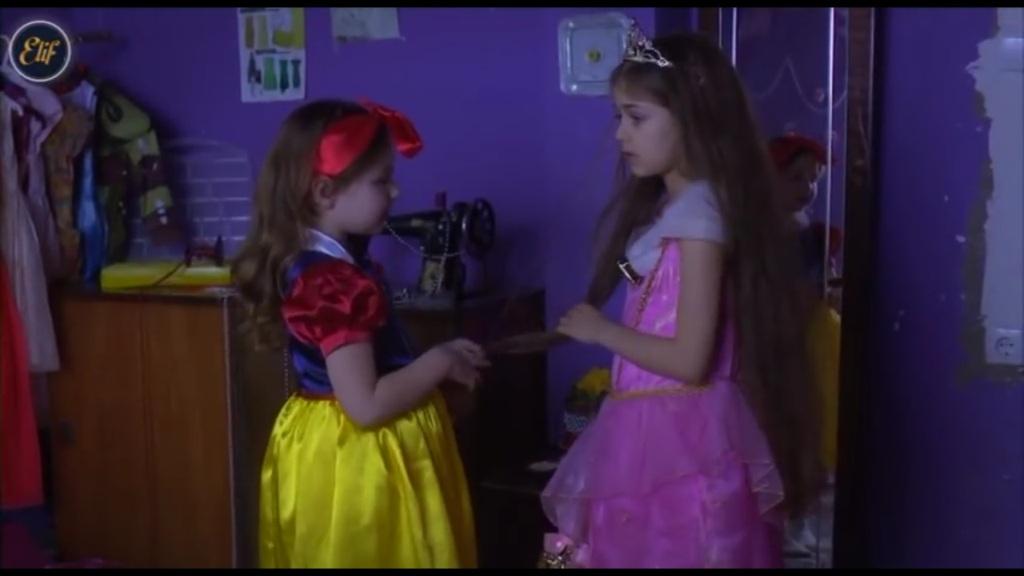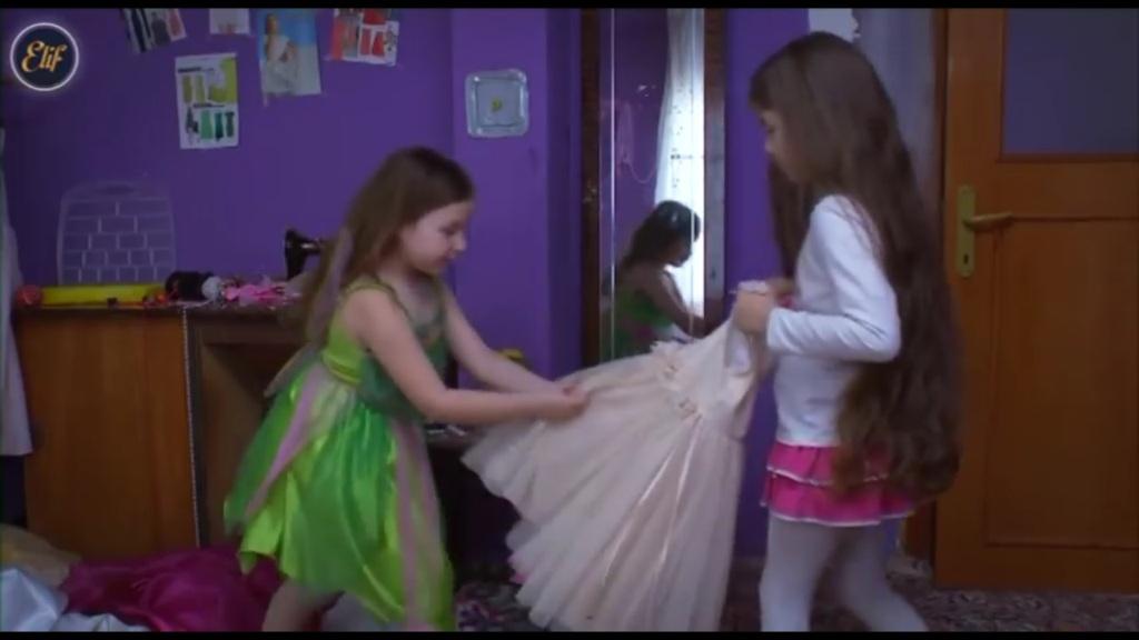 Inci i Elif są przebrane w sukienki. „Wyglądasz, jak księżniczka z bajek Disneya” – mówi córka Cemala. „Cóż, myślę, że powinniśmy się już przebrać i opuścić pokój…” – uważa Elif. „Nie, spójrz tylko na siebie” – Inci odwraca Elif w stronę lustra”. „Rzeczywiście, to bardzo piękne przebranie” – stwierdza córka Melek. „Naprawdę je lubisz, prawda?”. „Aha”. Inci sięga po kolejną sukienkę. „Przymierz jeszcze tę” – mówi. „Nie, Inci, wystarczy już…”. „Ale moja siostra wróci bardzo późno. Proszę, przymierz ją”. Dziewczynki przebierają się w kolejne sukienki.