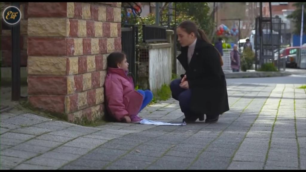 Elif udaje się do kuchni. Otwiera lodówkę, ale nie ma tam żadnego mleka. Idzie do pokoju gościnnego, gdzie Cemal jeszcze śpi. „Może pójdę do sklepu, nie zwracając jego uwagi?” – zastanawia się. – „Ale przecież nie mam pieniędzy. Nie będę mogła kupić mleka…”. Nagle dziewczynka zauważa leżące na komodzie banknoty. Podchodzi do nich, jednak ich nie zabiera. Nie jest w stanie posunąć się do kradzieży. W tym czasie Melek podchodzi do żebrzącej dziewczynki. „Maleńka…” – mówi. „Jesteś tą kobietą, którą widziałam wczoraj?” – pyta dziewczynka. „Tak, maleńka, to ja. Dlaczego tutaj jesteś?”. „Tylko nie dzwoń pani na policję. Proszę…”. „Oczywiście, że nie. Po prostu chcę ci pomóc, maleńka”.