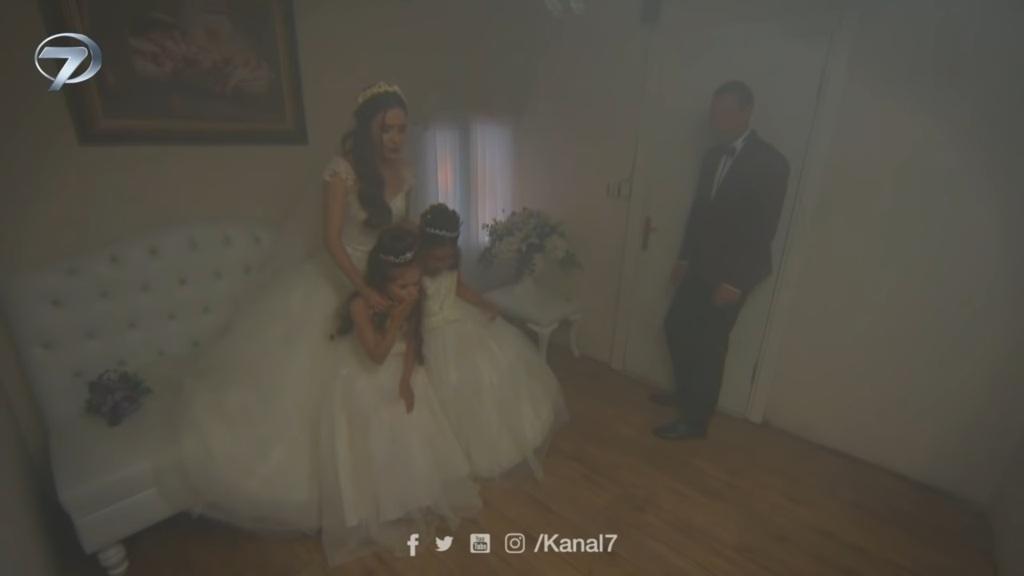 Kenan bierze głęboki wdech i potwierdza skinieniem głowy. Selim puka do drzwi i po chwili z pokoju wychodzi Zeynep. „Wszystko jest gotowe?” – pyta Selim. – „Czekamy już na pannę młodą”. Zeynep daje znak Melek, że może wyjść. Chwilę później panna młoda pokazuje się wszystkim w pięknej białej sukni. Jej oblubieniec z trudem łapie oddech. „Melek… Jak piękna jesteś…” – zachwyca się Kenan, cały aż drżąc z emocji. – „Wyglądasz cudownie w tej sukni”. Selim i Zeynep uśmiechają się i zostawiają nowożeńców samych.