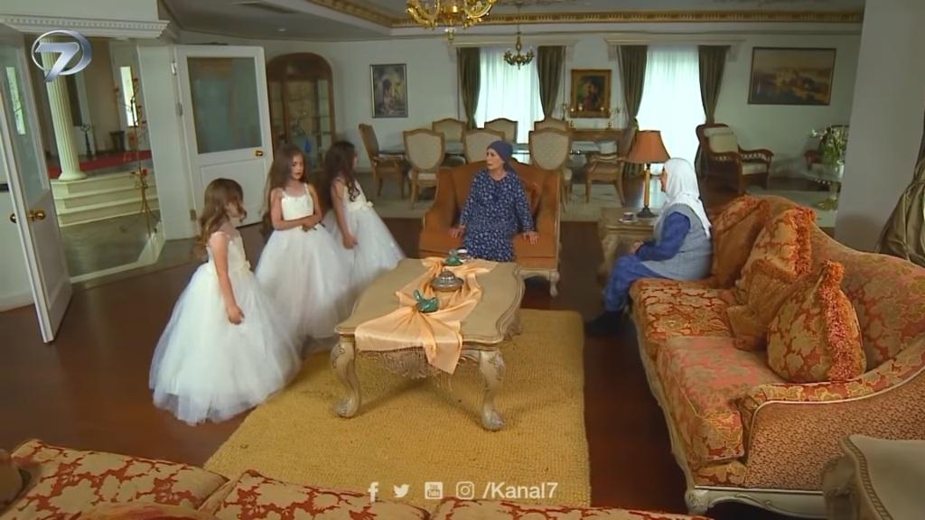 416: Finał drugiego sezonu. Rabia i Aliye siedzą w salonie. „Jestem bardzo podekscytowana dzisiejszym dniem” – mówi matka Kenana. „To oczywiste. Twój syn zamierza się pobrać, więc musisz być podekscytowana” – potwierdza Rabia. Do pomieszczenia wchodzą dziewczynki i prezentują swoje kreacje. „Wyglądacie pięknie, jak księżniczki” – zachwyca się Aliye. – „Ale jest trochę za wcześnie, aby być gotowym”. „Szykowałyśmy się już od samego rana” – oznajmia Elif. „Dobrze, chodźmy już. Asu musi nam jeszcze uczesać włosy” – odzywa się Tugce. Dziewczynki z powrotem biegną na górę. „Ach, dużo o tym myślałam i nadal nie mogę uwierzyć…” – wzdycha Aliye.