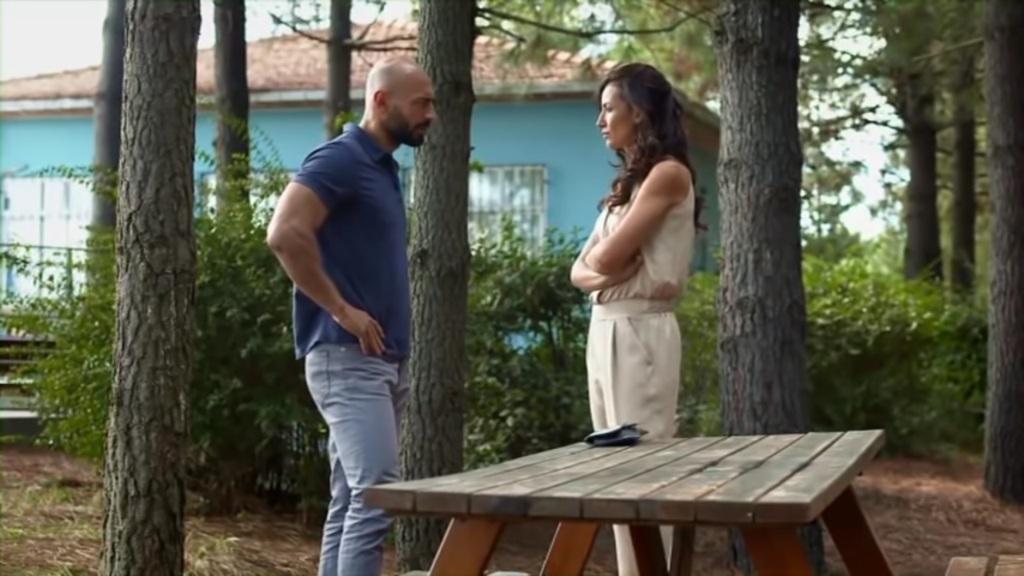 „Tymczasowe? To kiedy opuści nasz dom?” – pyta Asuman. – „Podaj mi dokładną datę. Chcę wiedzieć, jak długo mam jeszcze znosić te cierpienia?”. „Asu, przestań. Zostaw te rzeczy” – prosi Erkut. – „Poważnie chcesz wyjść?”. „Tak, opuszczam ten dom. Powiedziałam ci, żebyś ją wyrzucił. Ale w końcu kim ja dla ciebie jestem…? Wy sobie żyjcie tu spokojnie, ale beze mnie”. „Co ty mówisz?”. „Mówię ci, że wybrałeś inną kobietę”. „Gadasz głupoty…”. „Jesteś cały czas przy niej, szepczecie coś do siebie, a ze mną nie rozmawiasz o niczym! O co tu chodzi, Erkut?! Dlaczego ta kobieta wciąż tu jest?!”. „Nie mogę ci powiedzieć…”. „W takim razie opuszczam ten dom!”.