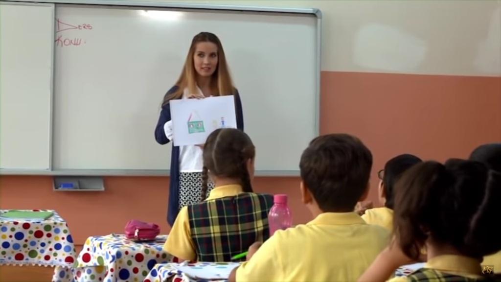 Melek i Elif są już przed szkołą. „Czy naprawdę lubisz swoją nauczycielkę?” – pyta Melek. „Tak. Kiedy uczy nas przedmiotów, czuję się tak, jakbym słuchała ciekawej bajki” – odpowiada dziewczynka. „A czy ty czasem nie usypiasz przy bajkach?”. „Mamo, nie to miałam na myśli. Widzisz, właśnie idzie moja nauczycielka”. Do Melek i Elif podchodzi nauczycielka dziewczynki. „Dlaczego nie było cię wczoraj w szkole? Martwiłam się” – mówi kobieta. „Miałam temperaturę” – odpowiada Elif. „Czy moja córka ze wszystkim sobie dobrze radzi?” – pyta Melek. „Słucha wszystkiego, co mówię, a także zawsze zna odpowiedzi na moje pytania. Jest naprawdę wspaniałą uczennicą”. W tym momencie rozlega się dzwonek rozpoczynający zajęcia. Nauczycielka i Elif udają się do klasy.