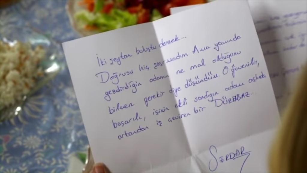 „Zgadza się” – potwierdza Arzu. – „Umit także jest ludzką istotą i także je posiłki. Tak w ogóle, co tam trzymasz?”. „To dyplom, który właśnie przysłali mi z Harvardu… To twoja poczta” – odpowiada Asuman i przekazuje Arzu korespondencję. Następnie odchodzi do kuchni. Karapinarówna zaś zabiera się za przeglądanie kopert. W końcu dociera do listu od Serdara i zaczyna go czytać: Napisałem do ciebie po raz kolejny, ponieważ wydaje się, że poprzednia wiadomość nie dotarła. Dobrze wiem, kto to spowodował, ale mogę pisać do ciebie codziennie, aż w końcu poznasz prawdę. Nadszedł ten dzień, Arzu. Czy jesteś gotowa zmierzyć się z prawdą? Zawsze zastanawiałem się, czy na tym świecie może być ktoś równie okrutny i zwodniczy jak ty. Myślałem, że to niemożliwe, ale jednak myliłem się. Okazuje się bowiem, że jest ktoś gorszy. Znacznie gorszy. Ktoś jeszcze bardziej podły i nieuczciwy. Prawdziwy demon…