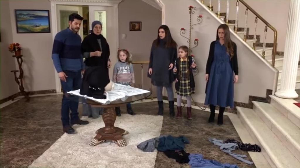 Z góry dobiega wołanie Arzu: „Melek! Melek! Kochanie!”. Wszyscy Emiroglu wychodzą z salonu. Widzą Karapinarównę, która stoi przy barierce i zrzuca znalezione w szufladach rzeczy na dół. „Zwracam ci rzeczy, które zostawiłaś w moim pokoju” – oznajmia Arzu. – „Dam ci również ciuchy, których już nie używam. Nie ubierasz się zbyt dobrze, a dzięki nim będziesz wyglądała lepiej. Ach, masz jeszcze to” – kobieta zrzuca kołdrę, pod którą spała Melek.