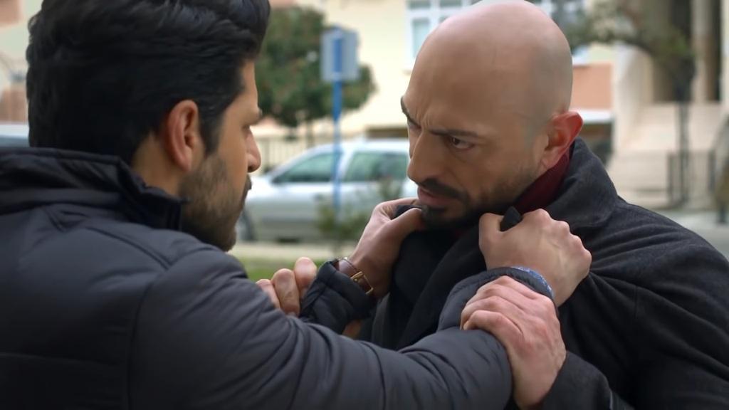 Selim chwyta swojego rozmówce za płaszcz i silnie nim potrząsa. „Co ty próbujesz zrobić?!” – pyta. – „Jak śmiesz zbliżać się do mojej żony i mojej rodziny?!”. „Czy potrzebuję do tego specjalnego zezwolenia?” – pyta ze spokojem Erkut. „Nie zbliżaj się ponownie do mojego domu! Zostaw mnie i Zeynep w spokoju! Rozumiesz?! Masz zostawić nas w spokoju!”. Selim bierze zamach głową i czołem uderza swojego rywala w nos! Erkut upada i chwyta się za twarz.