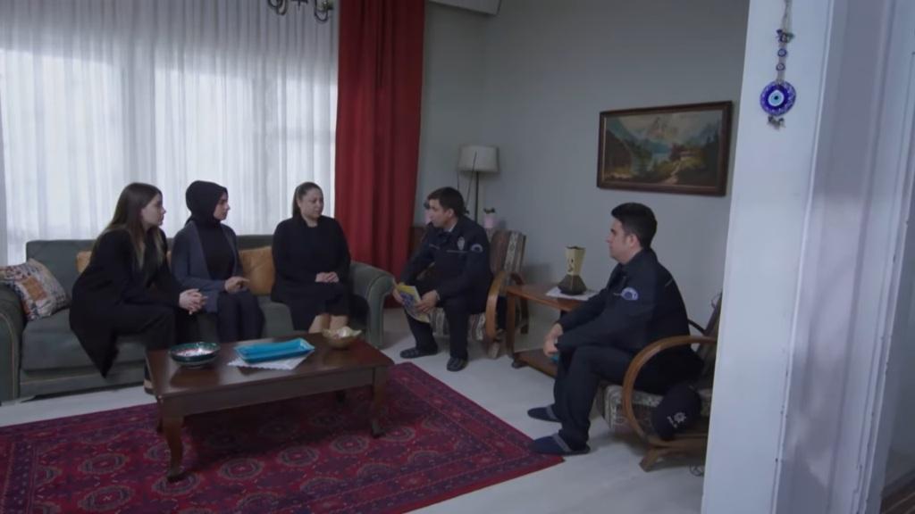 907: Policjanci przychodzą do domu Julide. Mama Emirhana i Melek przyjmują ich w pokoju dziennym. „Czy Tulay Simsek jest w domu?” – pyta funkcjonariusz. „Tak, ale jest w złym stanie” – odpowiada Julide. – „Nie może zaakceptować tego, co się stało. Zaprowadziłyśmy ją do jej pokoju i teraz śpi”. „To normalne, potrzebuje czasu. Przejdźmy więc do rzeczy. Wyniki sekcji zwłok są już znane. Zbadany został pocisk, który ugodził ofiarę, ale nie znaleziono na nim żadnych śladów. Oznacza to, że ustalenie sprawcy będzie nieco trudniejsze, ale zrobimy wszystko, co w naszej mocy, by stało się to jak najszybciej”.