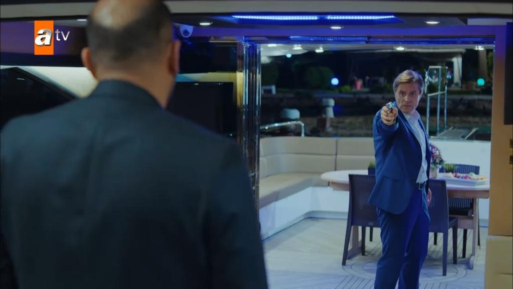 Akcja przenosi się na jacht. „Pogoda bardzo piękna. Płyniemy prosto na morze Egejskie” – oznajmia Kaya. – „Weźmiemy coś dla ciebie. Pójdę ci wybrać. Wiesz, że mam gust. Przy okazji, podłoga dopiero co umyta. Nie potknij się i nie upadnij”. Demiros schodzi pod pokład. W tym momencie na jacht wchodzi uzbrojony Mahir. Pokazuje się żonie i daje jej znak, by zachowała ciszę. Gdy Kaya wraca na pokład, widzi przed sobą Mahira, który celuje do niego z broni! Wolną ręką Soyer rozwiązuje węzły na rękach żony. „Arzu, wyjdź” – mówi Mahir. – „Weź kluczyki i nie waż się zbliżać. Wsiadaj do samochodu i od razu odjeżdżaj”. „A ty?” – pyta kobieta. „Nie martw się o mnie, zaraz przyjadę. Policja za chwilę tu będzie”.