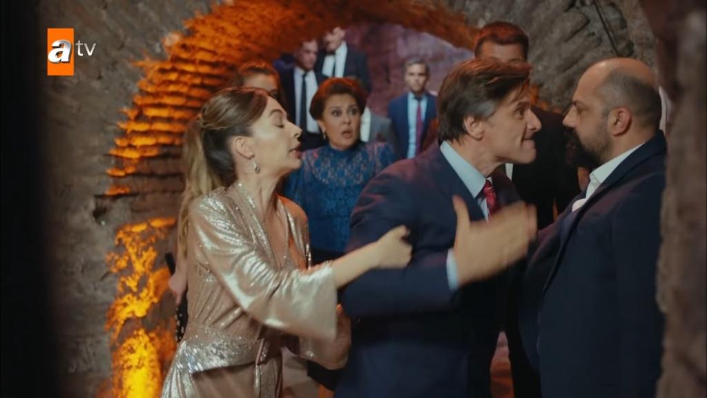 Arzu schodzi ze sceny i opuszcza salę. Kaya udaje się tuż za nią. „Co ty wyprawiasz?!” – pyta Demiros. „Przepraszam? Nie rozumiem” – mówi kobieta. „Nie udawaj. Skąd znasz Cihana?”. „W jakim sensie Cihana? Ach, mówisz o Cihanie Kocaoglu?”. „Nie denerwuj mnie. Co ty z nim robisz?!”. „O czym ty mówisz, nie rozumiem? Ten człowiek przekazał darowiznę. Poza tym, co ci do tego?”. „Wiesz, kim on jest?”. „Dosyć. Naprawdę nie chcę cię więcej słuchać”. Nagle pojawia się Mahir i kolejny raz rzuca się na Demirosa. „Czy ci nie mówiłem, byś nie dotykał mojej żony?!” – wrzeszczy Soyer.