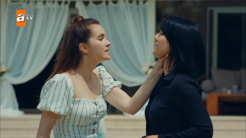 Akcja wraca do ogrodu domu Cihana. „Spóźniliśmy się” – mówi Melisa. Nagle z domu wychodzi służąca. Soyerówna krzyczy do niej: „Ślub się zakończył?!”. „Nie, odbędzie się w innym miejscu” – odpowiada kobieta. „Gdzie? Gdzie się odbędzie?”. „Nie wiem”. „Wiesz. Nie kłam” – odzywa się Cennet. „Nie wiem…”. Córka Kayi chwyta pracownicę za szyję i zaczyna ją dusić! „Posłuchaj mnie! Mów, gdzie oni są, inaczej będzie źle z tobą!” – ostrzega. – „Gdzie jest mama?!”. „Mów, gdzie się odbywa ślub?!” – żąda Melisa. „Słuchaj, źle będzie z tobą! Gadaj!”. „Są na wsi, w domu pana Cihana…”. „Gdzie jest ten dom?! Mów szybko adres!”.