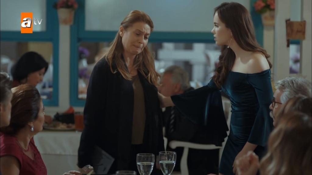 Akcja wraca do restauracji. „Jak babcia?” – pyta Riza. „Jest lepiej, dziękuję” – odpowiada Cennet. „Nie martw się. Zajmę się nią, obiecuję”. W lokalu w tym momencie pojawia się Ozlem. „Dobry wieczór” – mówi wszystkim. Cengiz omal nie krztusi się wodą. Po chwili siostra zajmuje miejsce obok niego. „Skąd ona się tu wzięła?” – szepcze Riza do żony. „Ja ją zaprosiłam” – odpowiada Sema. – „W końcu to rodzinny obiad…”. „Po raz pierwszy na rodzinnym obiedzie nie ma Selima” – stwierdza Melisa. Nagle Arzu wypuszcza szklankę z wodą na widok… Mine! „Mama?” – pyta zaskoczona Cennet. Wstaje od stołu i podchodzi do kobiety. „Mamo, co ty tutaj robisz?” – pyta.