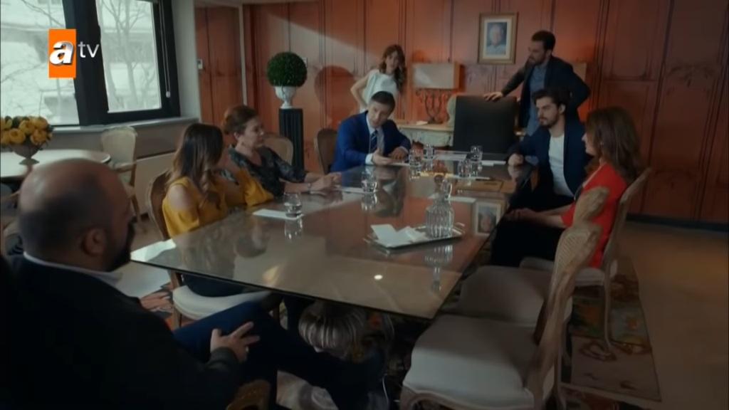 Następna scena zaczyna się zebraniem w sali konferencyjnej w firmie. Oprócz Soyerów, na spotkaniu zjawiają się Nilgun i Selim. „Natychmiast odsprzedacie swoje akcje, żeby zrekompensować szkody wyrządzone przez Cengiza” – postanawia Orhan. „Jak sobie życzysz” – mówi Selim. „Nigdy się na to nie zgodzę!” – oświadcza stanowczo Nilgun. „Dobrze, więc natychmiast wyłożycie sto dwadzieścia milionów lir w gotówce”. „Orhan, moje akcje należą do was. Zgadzam się” – potwierdza Selim. „A ja się nie zgadzam. Ta firma to wieloletni wysiłek”. „Masz rację, Nilgun. Wieloletni wysiłek, ale nie twój” – stwierdza Sema. – „Sądziłam, że uda nam się to załatwić ugodowo, ale tak się nie stało”.