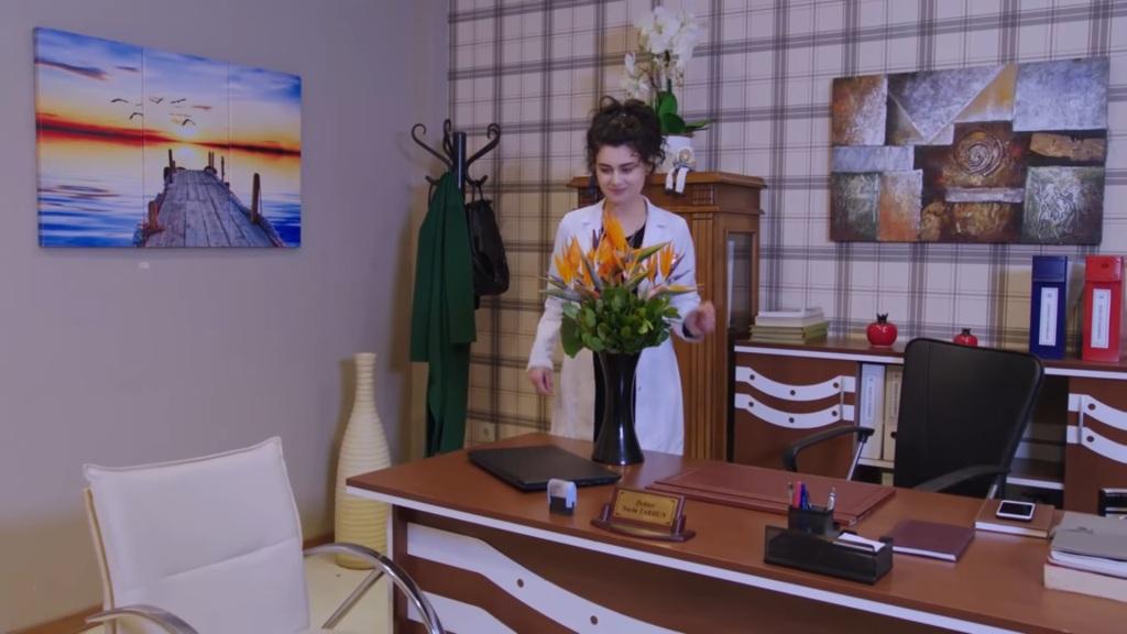 Kiedy wykładowca odchodzi, Banu kieruje pytające spojrzenie na przyjaciółkę. „Nawet tak na mnie nie patrz” – mówi Reyhan. – „Nie mogłam oddać pracy, której nie wykonałam sama. To by oznaczało, że wszystkich okłamałam”. Akcja wraca do szpitala. Narin wchodzi do swojego gabinetu. Na jej biurku ktoś zostawił wazon z bukietem kwiatów. Dziewczyna czyta dołączony do nich liścik: „Jesteś w miejscu, na które zasługujesz. Zawsze bądź zdeterminowana i spokojna. Życzę ci szczęścia i spokoju ducha”. „Patrzcie tylko na tego bałwana” – mówi Narin i wybiera numer do męża. – „Dostałam od ciebie kwiaty. Są bardzo piękne. Skąd wiedziałeś, że takie mi się podobają?”.
