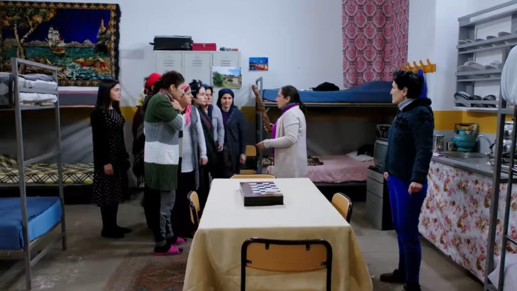 W następnej scenie w celi jest już gotowy obiad. Nebahat nie pozwala jednej z osadzonych zasiąść do stołu. „Kto nie płaci, ten nie je” – oznajmia. – „Weź talerz i odejdź od stołu. No już!”. „Chwila, chwila” – odzywa się Reyhan. – „To znaczy, że my będziemy jeść, a Aysel będzie na nas patrzeć, tak? Postępujesz niesprawiedliwie. Ciekawe, czy naczelnik więzienia o tym?”. „Uważaj, bo ci ten wścibski jęzor pokroję na kawałki!” – ostrzega Nebahat, stając przed Reyhan. – „To moja cela i ja tutaj ustalam wszelkie zasady, rozumiesz mnie?! Ty też straciłaś swoją szansę na jedzenie”.