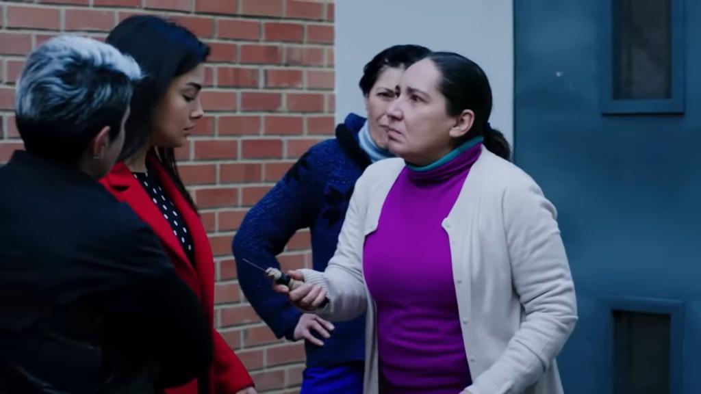 Akcja wraca na spacerniak. „Co? Myślałaś, że wymkniesz się z moich rąk po tym, co zrobiłaś?” – pyta Nebahat. – „Nic podobnego. Mam niezawodną obstawę, dzięki Bogu”. „Czego ode mnie chcesz?” – pyta Reyhan, próbując ukryć swoje przerażenie. „Wiesz czego chcę? Twojego życia!” – Nebahat wyciąga nagle nóż i jego ostrze wymierza w kierunku Reyhan! Dziewczyna chce uciec, ale dwie osadzone chwytają ją za ramiona, unieruchamiając. „Puśćcie mnie! Puśćcie, powiedziałam!” – żona Emira desperacko próbuje wyrwać się z silnego chwytu dwóch kobiet, ale jest bez szans. Dodatkowo podchodzi do niej Firdevs i mówi, szarpiąc ją za włosy: „Siostra Nebahat cię uprzedzała, ale nie posłuchałaś. Nie powinnaś była naruszać naszego spokoju”.