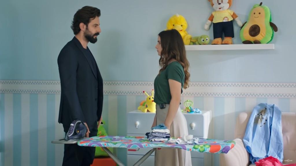 „Feride… Powiedziała mi coś” – oznajmia Melike. – „Jest jej bardzo przykro. Spaliła twoją koszulę podczas prasowania. Bardzo się tym przejęła”. „To żaden problem, siostro”. Kamera przenosi się do pokoju dziecięcego. Feride nosi Yigita na rękach i mówi do niego: „Wiesz, co zrobiłam, kiedy jeszcze spałeś? Spaliłam koszulę twojego taty. Dopiero co zbiłam ramkę z jego zdjęciem. Za każdym razem robię coś, co wyprowadza twojego tatę z równowagi. Tym razem powiedziałam mu od razu i przeprosiłam, ale i tak się zdenerwował. Nic mi nie powiedział, ale zrozumiałam to po jego spojrzeniu”.