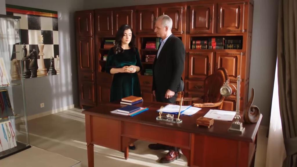 54: Reyhan wchodzi do gabinetu teścia. „To dla ciebie” – oznajmia Hikmet i przekazuje synowej szkatułkę. – „Ten naszyjnik jest pamiątką rodzinną. W dniu, kiedy się żeniłem, mój ojciec nałożył go na szyję Cavidan. Przechodzi z rąk do rąk, z pokolenia na pokolenie. Teraz kolej na ciebie. Dla naszej rodziny to bardzo cenna pamiątka”. Reyhan odkłada szkatułkę na biurko. „Przepraszam, ale nie mogę tego przyjąć” – oznajmia. „Nie rozumiem. Co to znaczy, że nie możesz go przyjąć, córko? Masz do niego pełne prawo. W przyszłości ty przekażesz go swojej córce lub synowej. Weź, nie chcesz chyba mnie dłużej męczyć”.