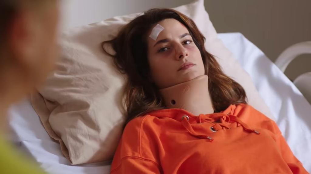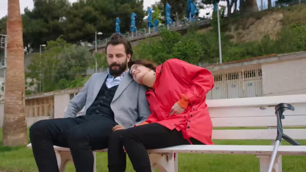 „Dobrze, jedźmy…” – zgadza się Cemre z wyraźnym zawodem w głosie. Podnosi się z ławki i chwyta się za głowę. – „Ach, moja głowa… Jakby ktoś mnie kłuł od środka”. „Zbyt wcześnie wyszłaś z łóżka” – stwierdza Emir. – „Wracamy do szpitala”. „Nie, nie ma takiej potrzeby. Doktor powiedział, że to zupełnie normalne”. „Cemre, jedziemy. Musi zobaczyć cię lekarz”. „Nie przesadzaj, Emir. Posiedzę trochę i mi przejdzie. Jedź do domu, jeśli tak bardzo chcesz…”. „Nie mów bzdur, nie zostawię cię samej. Pojedziemy wtedy, gdy poczujesz się lepiej”. Następuje zbliżenie na twarz Cemre. Pojawia się na niej cwaniacki uśmieszek.