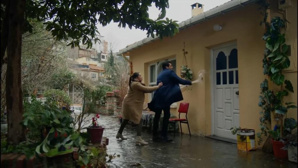 Na zewnątrz wychodzi Nihan. „Co się tu dzieje?” – pyta dziewczyna. „Wielka góra stała się myszą, moja żoneczko” – odpowiada Emir. – „Spodziewałem się po panu Kemalu czegoś więcej”. „Co ty tutaj robisz?” – Nihan kieruje wzrok na Kemala. „Przyszedłem do Leyli” – odpowiada mężczyzna. „Ta odpowiedź obraża umysł człowieka” – stwierdza Emir. „Już dobrze, Emir. On przyszedł do Leyli. Chodź, idziemy stąd” – prosi Nihan. „Tak ubrany?”. „Za to, że przyszedłem tak ubrany, nie możesz mnie wysłać do więzienia” – stwierdza Kemal.