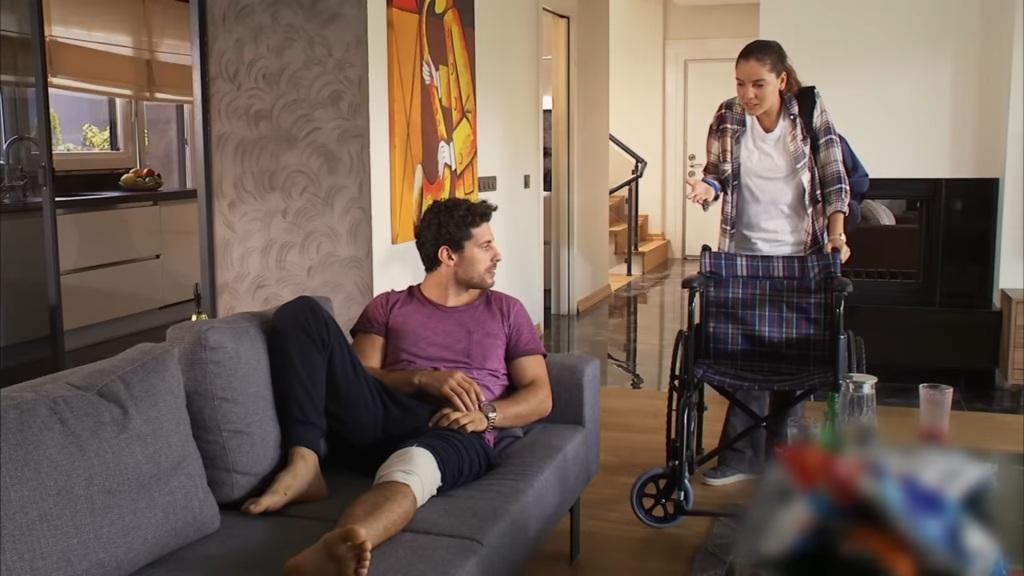 „Jestem głodny. Co mi przygotujesz?” – pyta mężczyzna, leżąc już na kanapie. „Nic. I tak mało jesz” – odpowiada Sabah. „Jaka ty jesteś bezduszna! To przez ciebie znalazłem się w takim stanie, nie zapominaj! Jestem głodny!”. „A ja mam pracę! W biurze czeka na mnie klient, sam widziałeś”. „Więc co? Zostawisz mnie tu samego?” – Kerem chwyta się za kolano i jęczy z bólu. – „Och, tak bardzo mnie boli”. „Muszę iść. Nie rozumiesz tego?”. „Idź, pewnie! Ciebie mój ból przecież nie boli!”. Dziewczyna chwyta swój plecak i opuszcza dom.