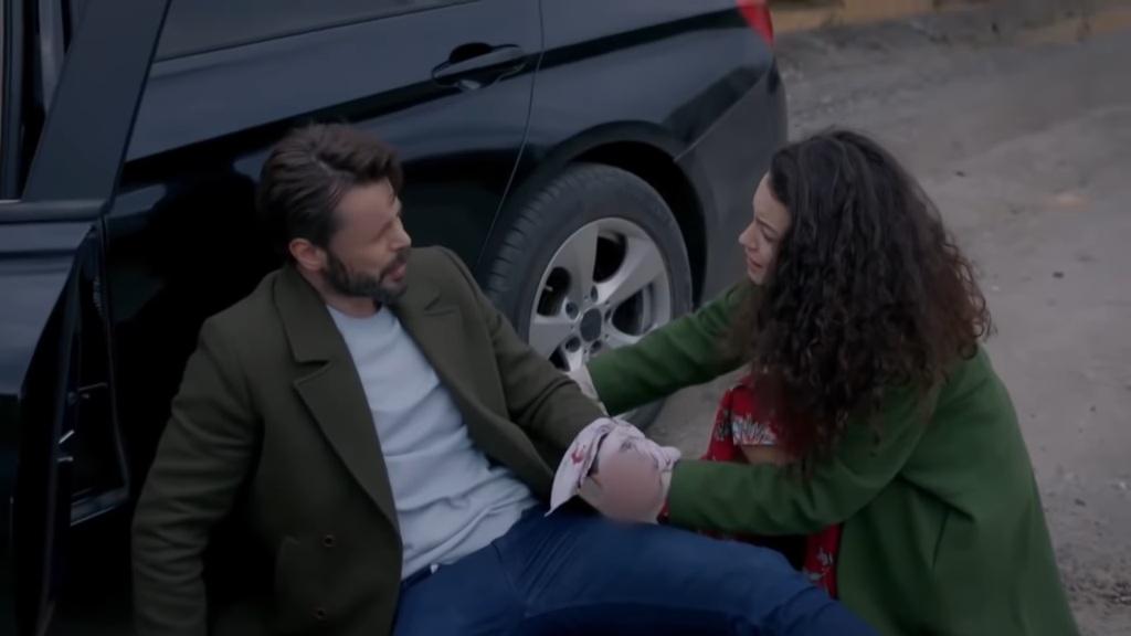 32: Akcja odcinka rozpoczyna się w miejscu wypadku. Meryem odzyskuje przytomność. Widzi Leventa, którego głowa bezwładnie opadła na kierownicę. „Levent, wszystko w porządku?!” – pyta przerażona. Wysiada z pojazdu i przeszukuje swoją torebkę w poszukiwaniu komórki. – „Muszę wezwać karetkę!”. W tym momencie Levent wybudza się. Chwyta się za obolałą głowę i mówi: „Nic mi nie jest. Uspokój się, wszystko jest w porządku. Moja noga… Nie mogę ruszyć nogą”. „Od razu zadzwonię po karetkę. Ale nie mogę znaleźć telefonu! Poczekaj, pozwól, że ci pomogę”. Meryem pomaga mężczyźnie wysiąść z samochodu. „Uderzyłeś się w głowę dość mocno” – ocenia po sińcu na jego czole. – „Ale wszystko jest w porządku, prawda?”.